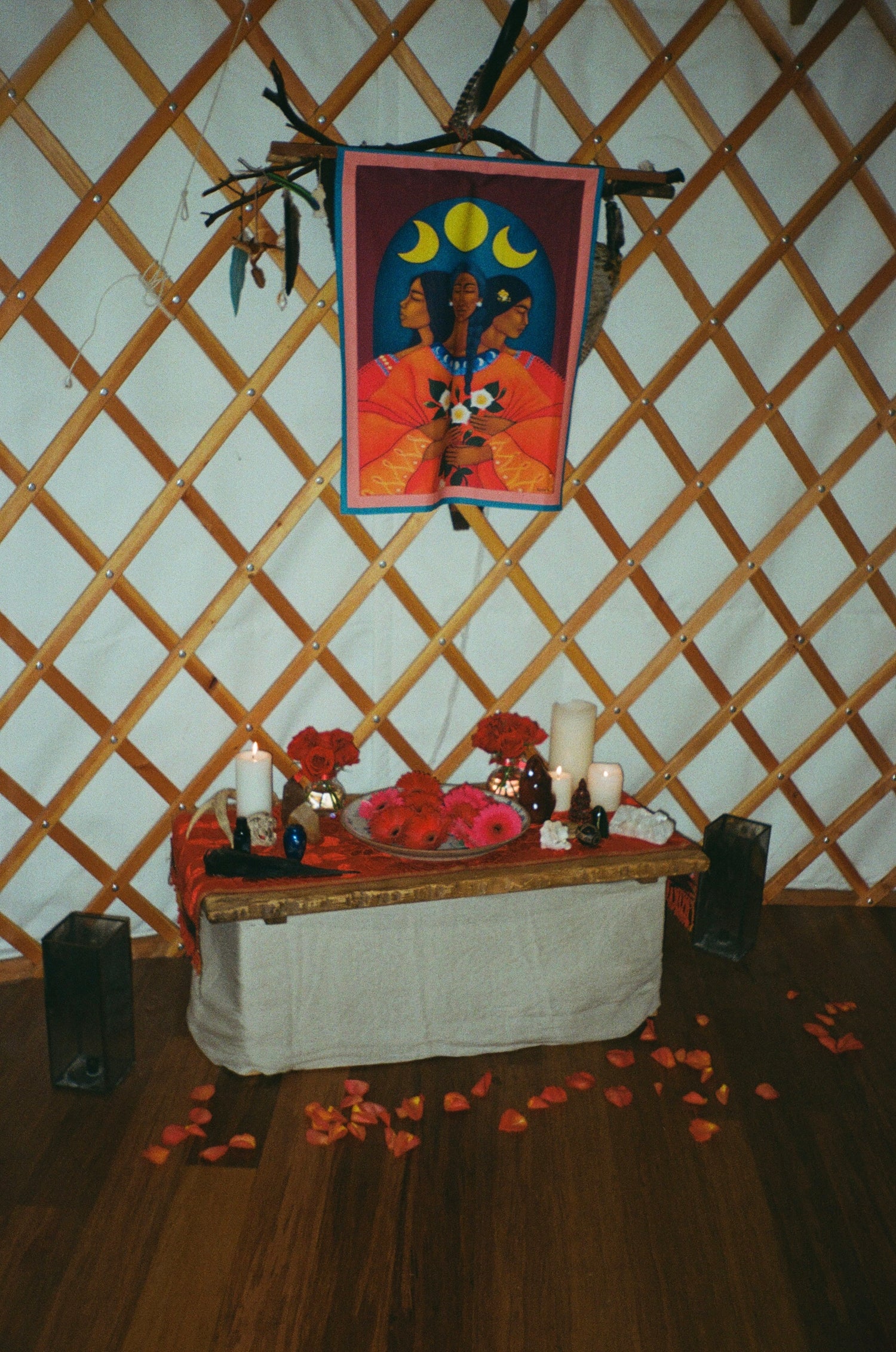 Our retreat and ceremony space will be held in a Mongolian Yurt that is decorated in a ceremonial and shamanic setting.